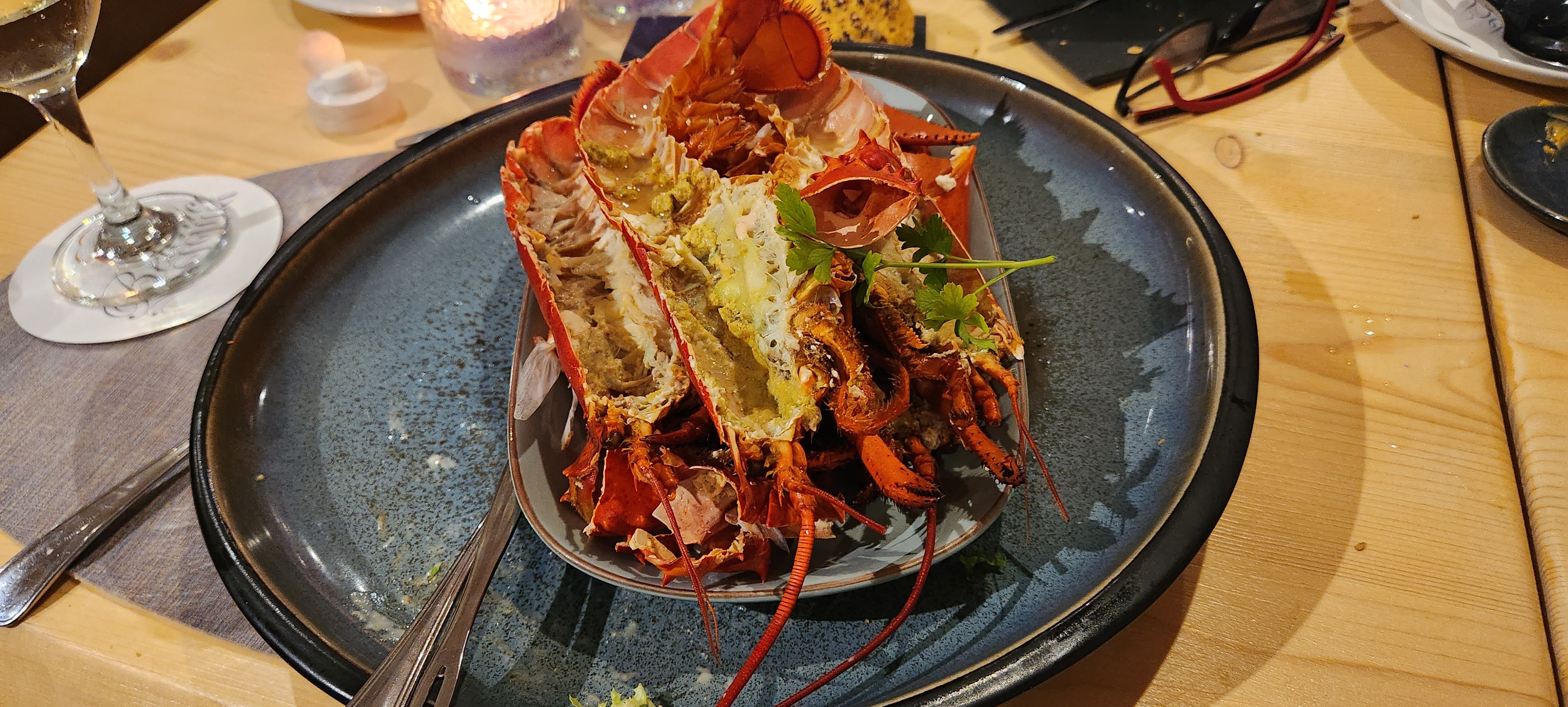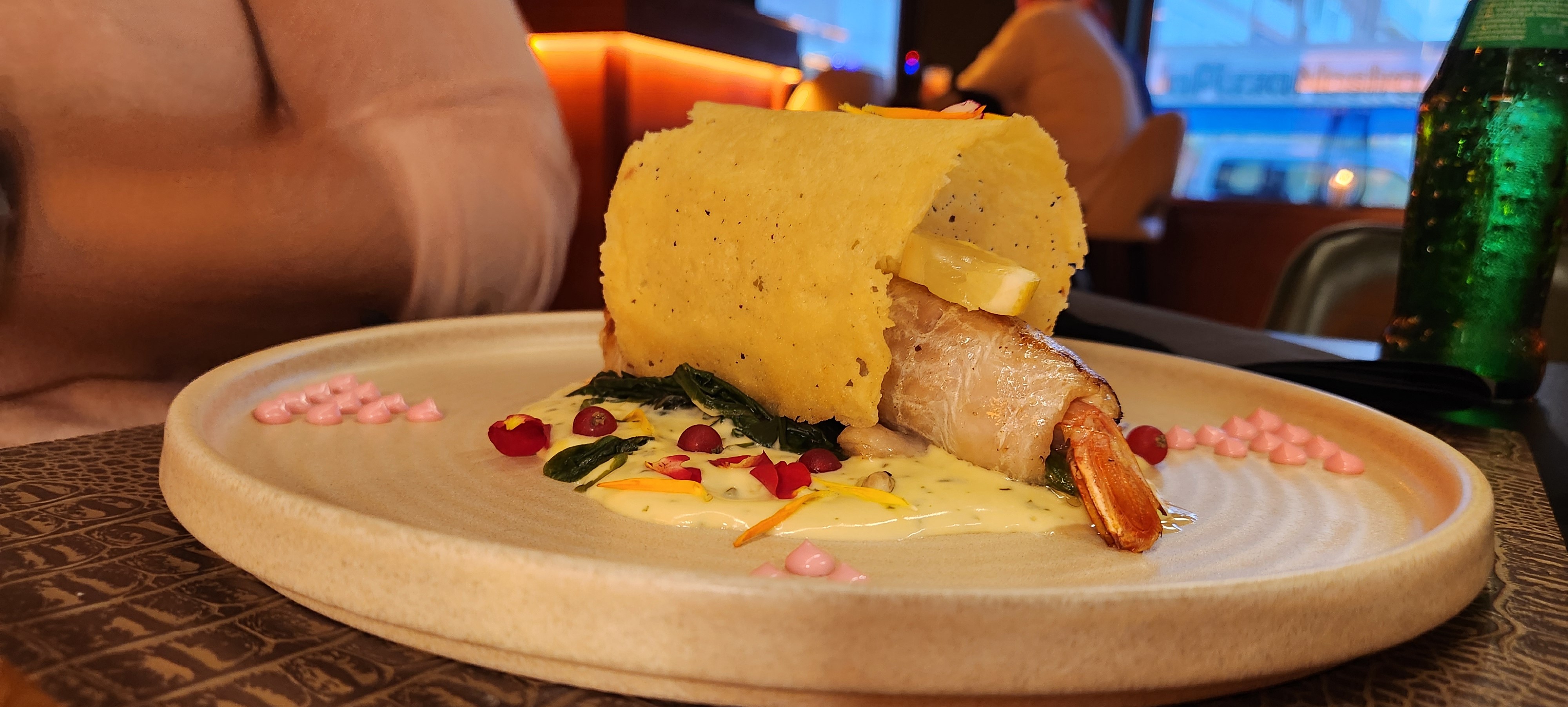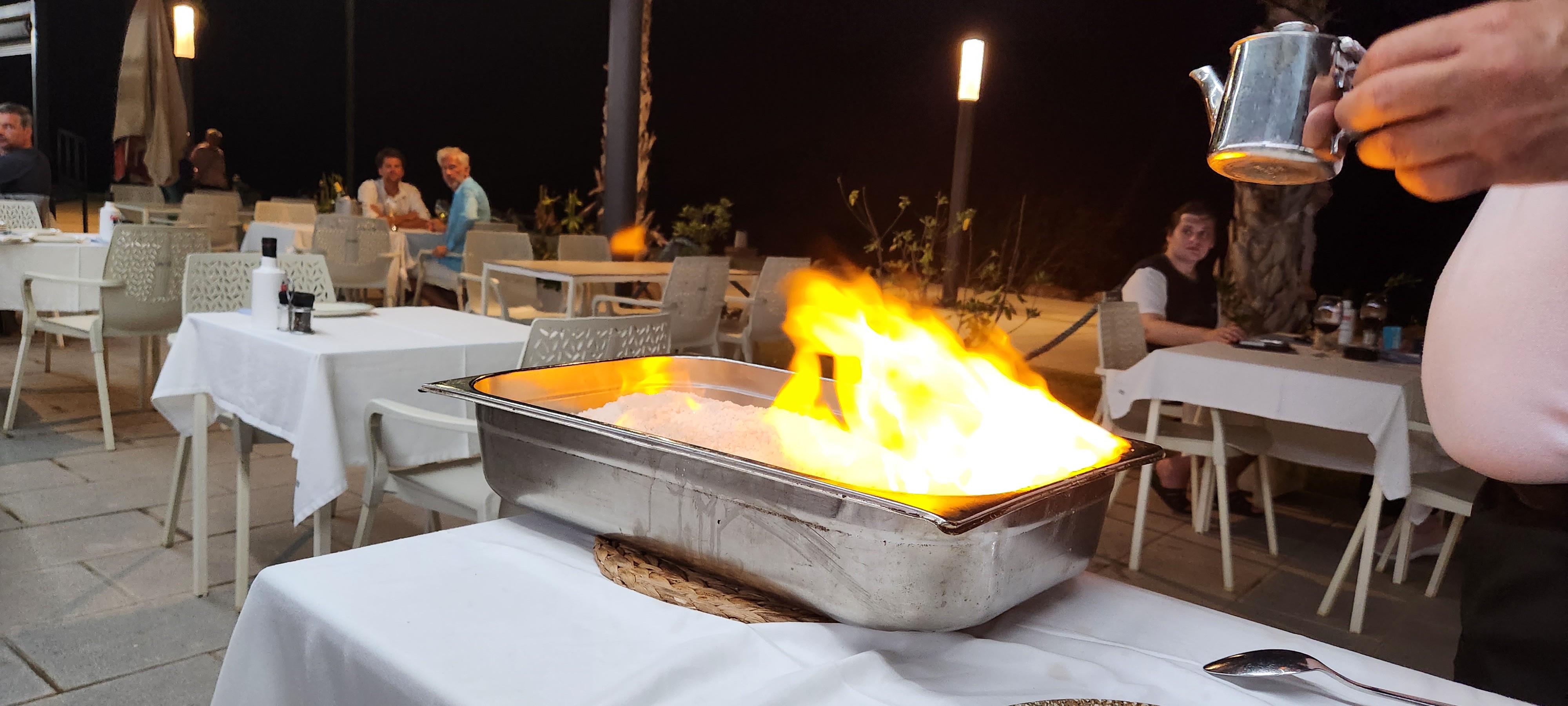 Saltinbakad flamberad fisk på restaurant Las Columnas