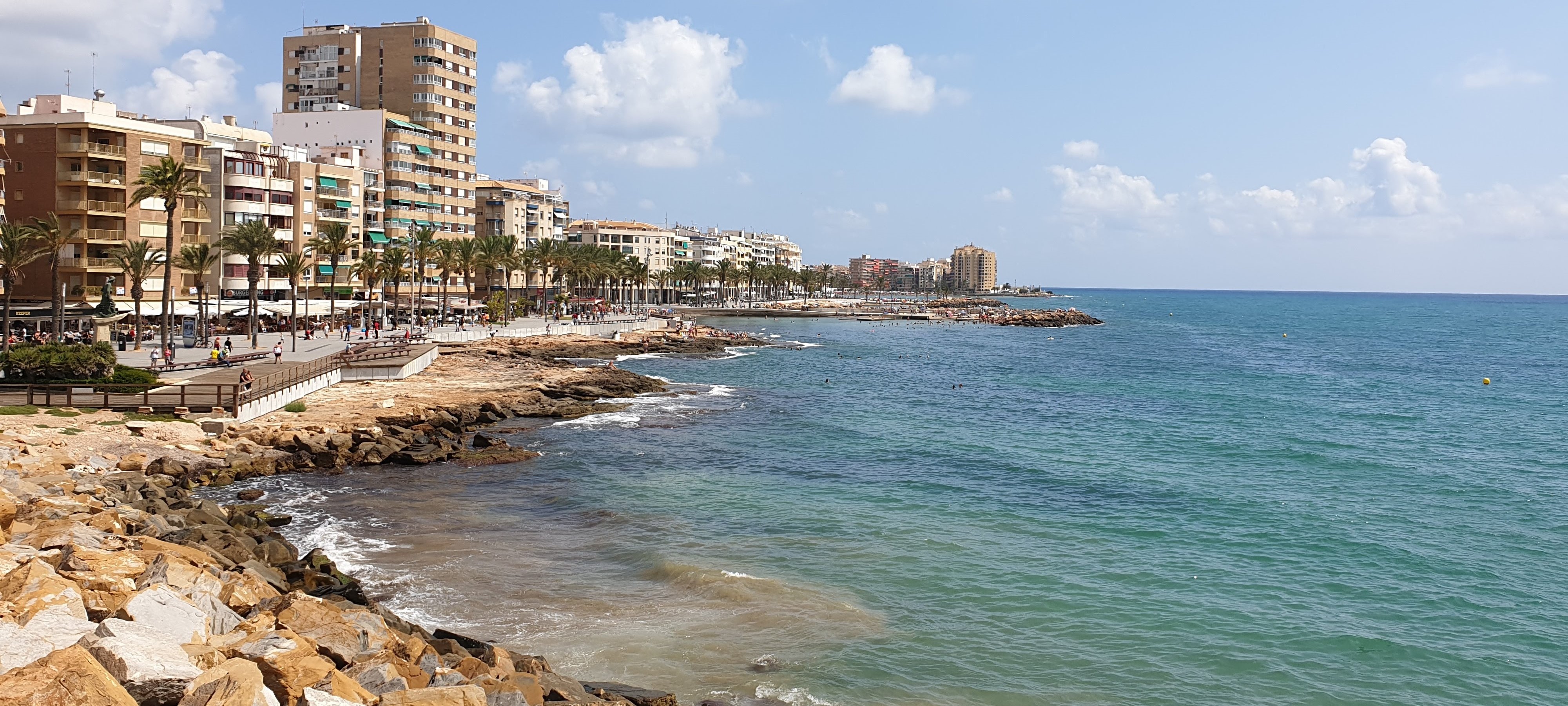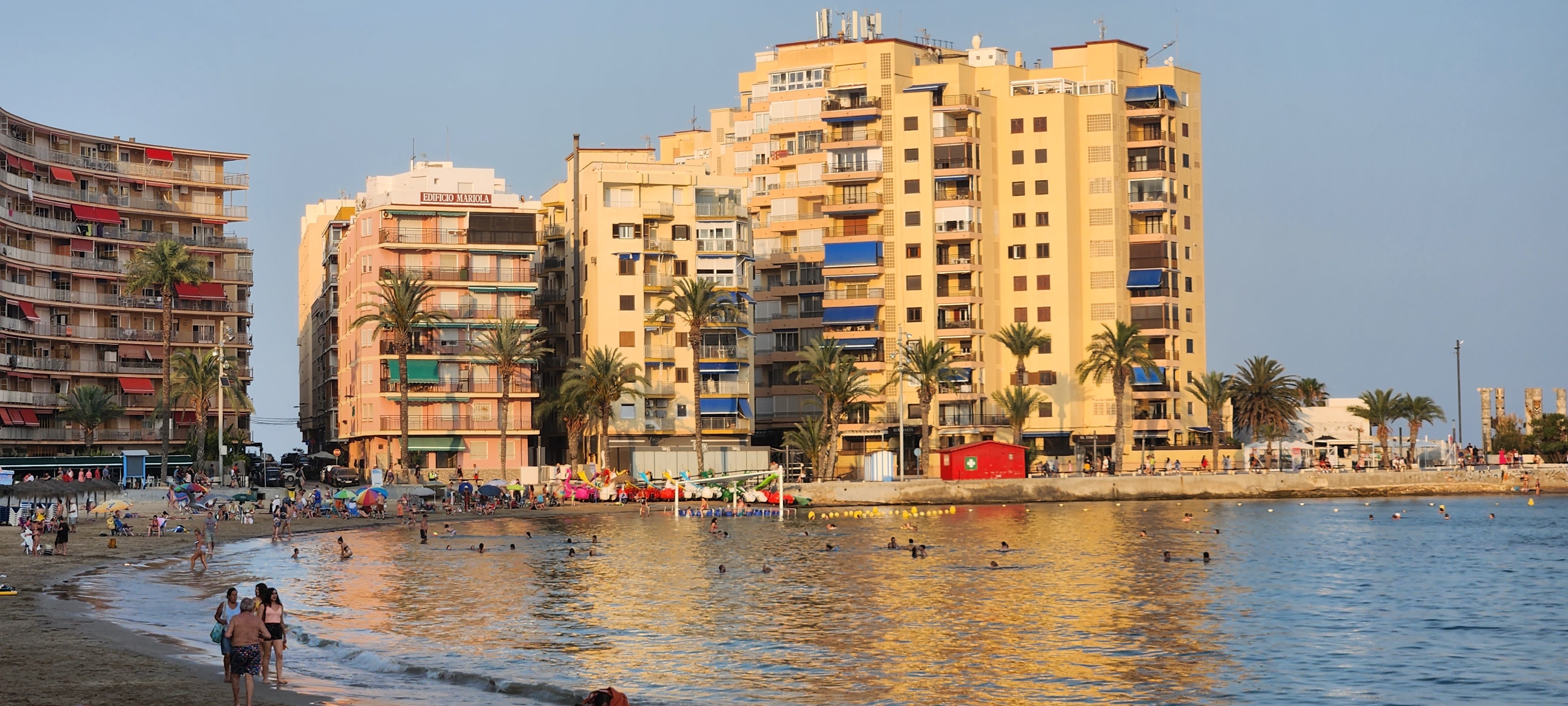 Utsikt från piren i hamnen mot vår lägenhet som är längst bort i bild