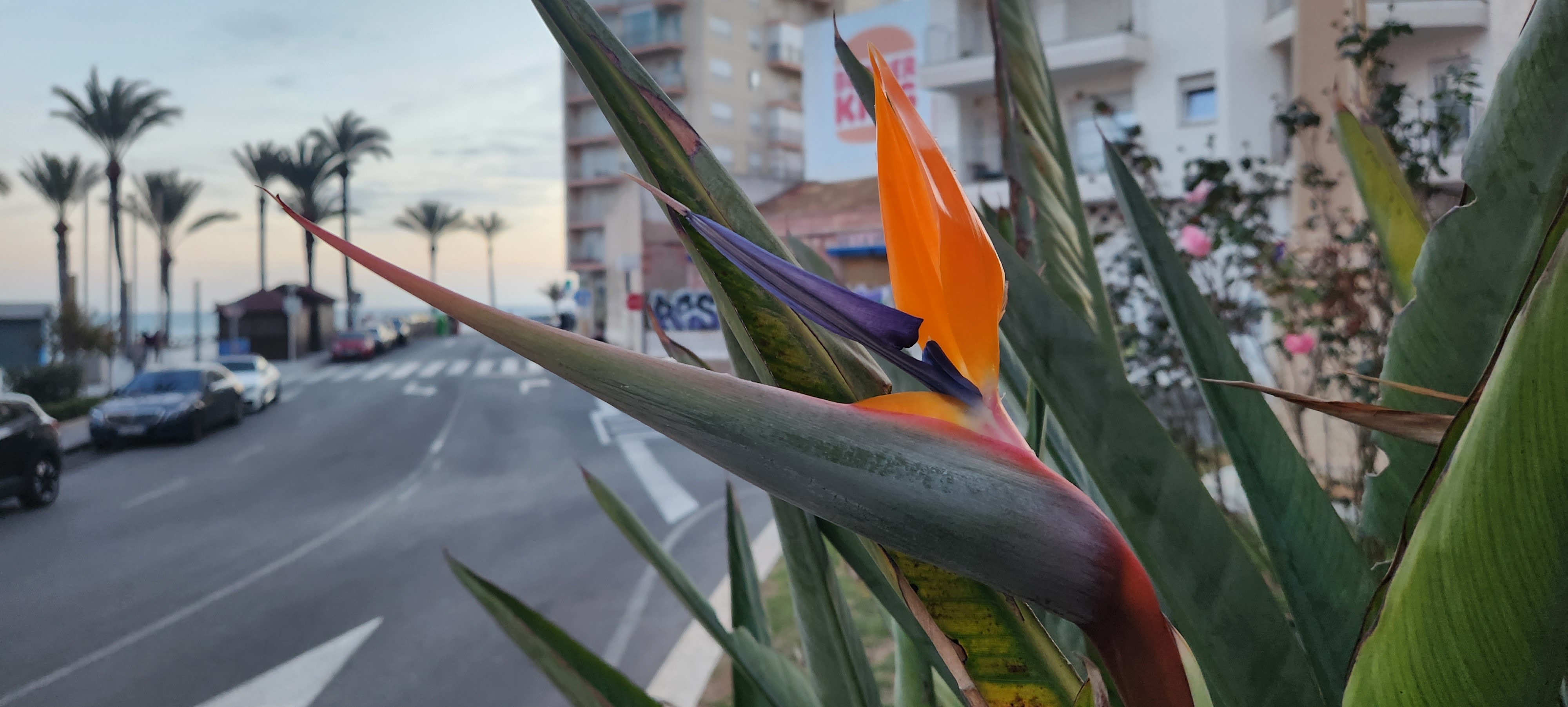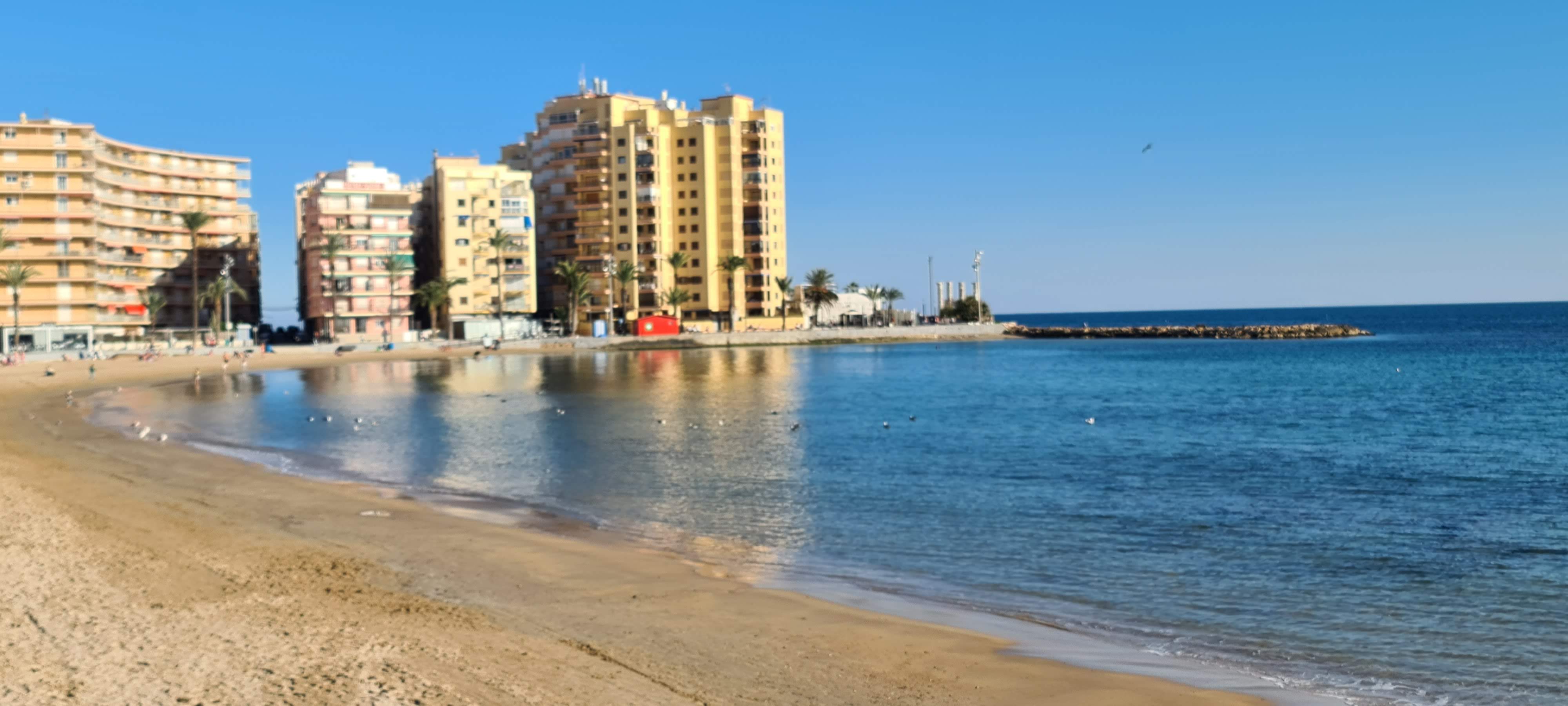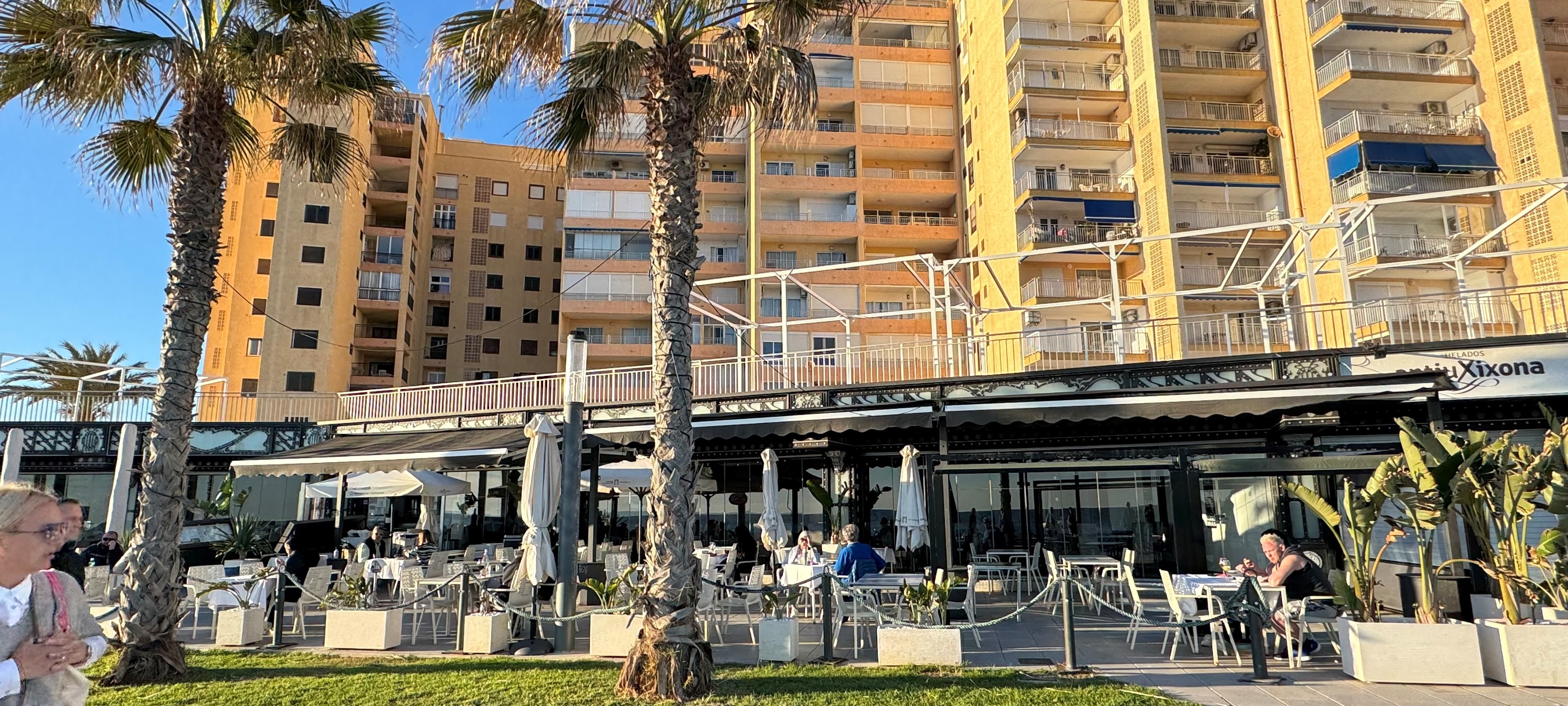 Restaurang Las Columnas ligger precis under poolen framför lägenheten