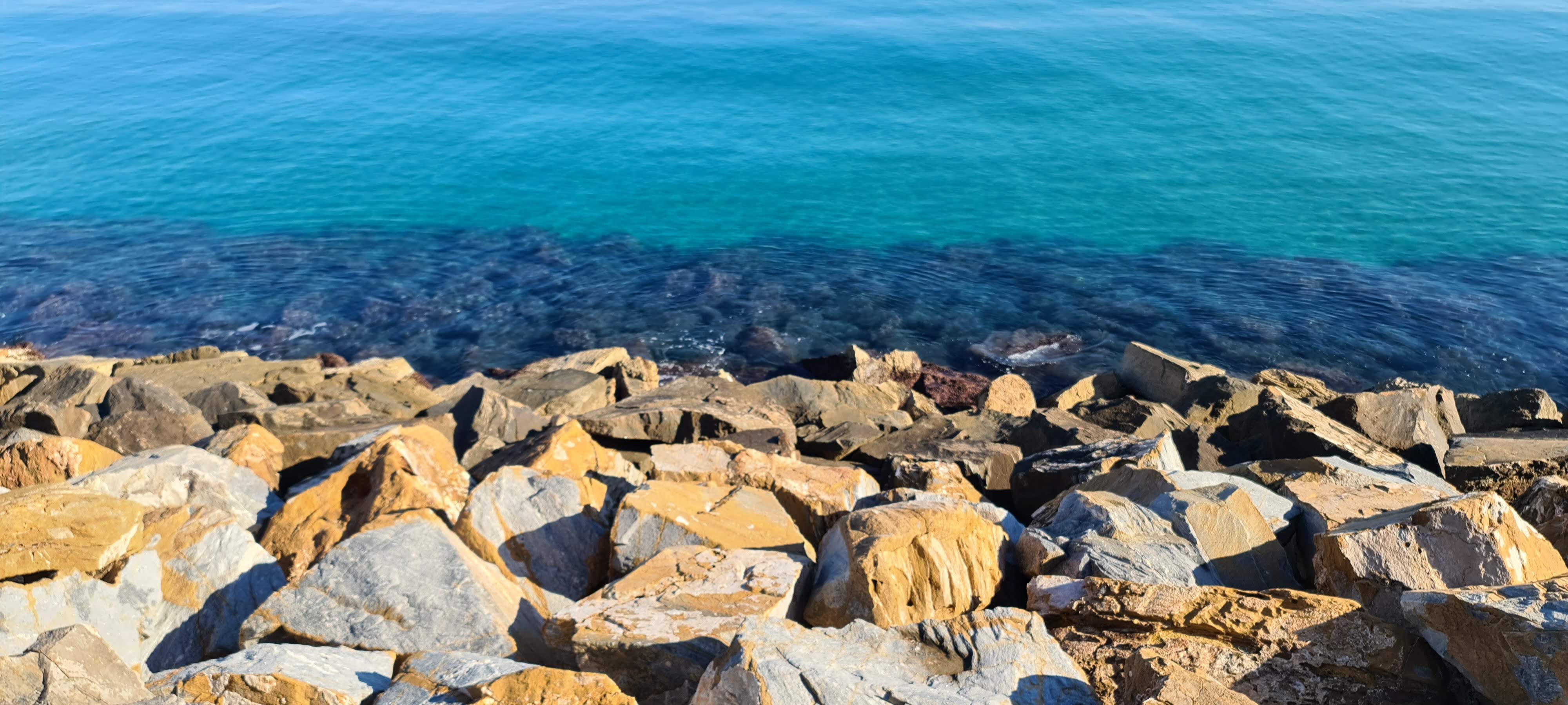 Den 1,6 km långa piren vid hamnen. Vårt hus längst borta i bild